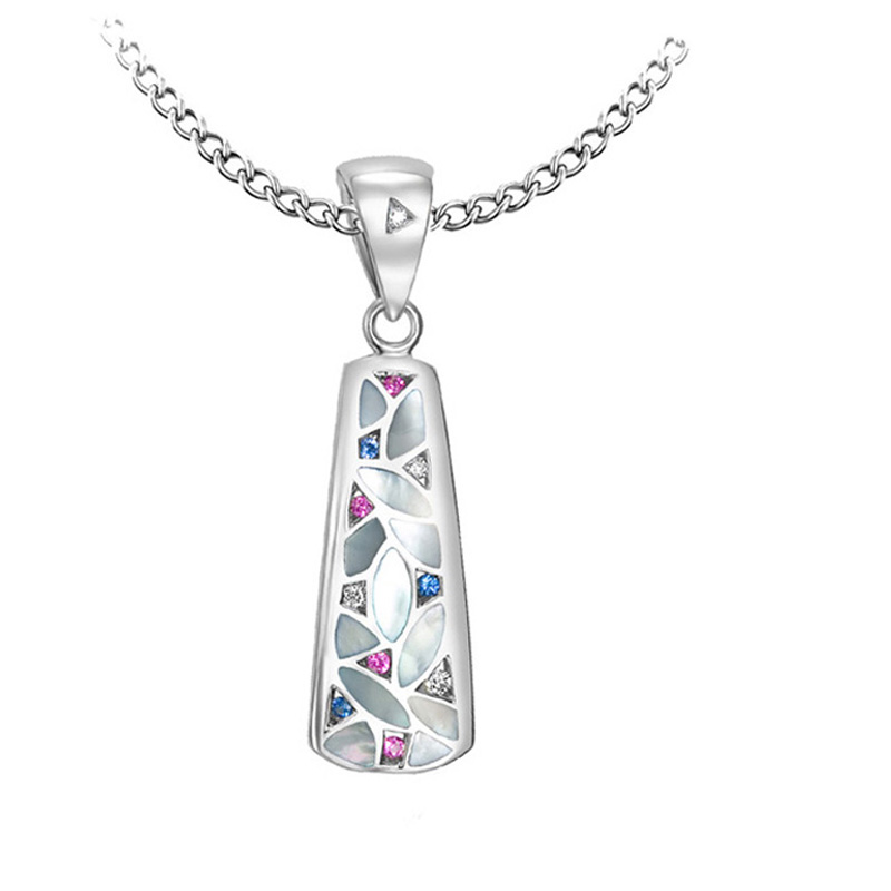 925 Sterling Silver Inlay Pendant with .06cts.T.W. of Diamond Accents, .12cts.T.W. of Blue Sapphires and Pink Sapphires, MOP x 12