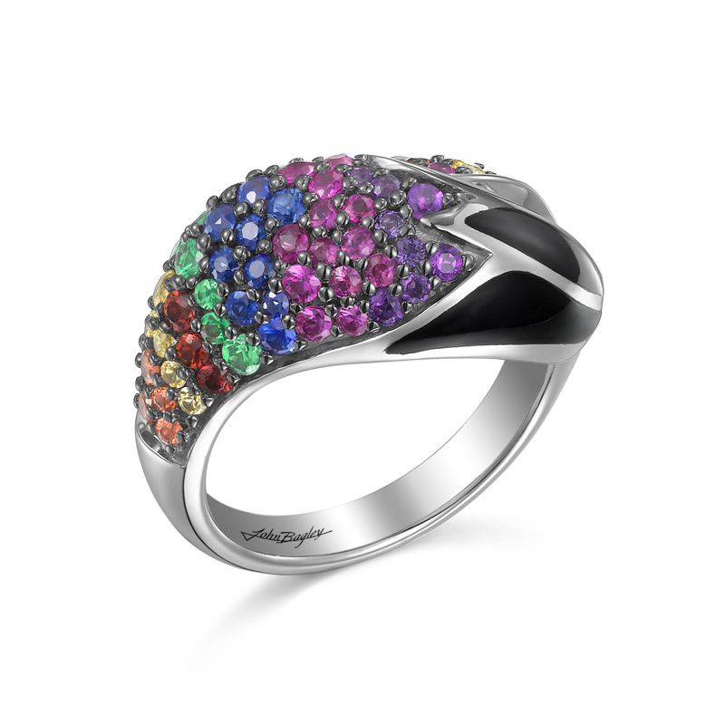 925 Sterling silver inlay ring with  1.98cts.T.W.of Multi-Color Sapphires, Black Agate
