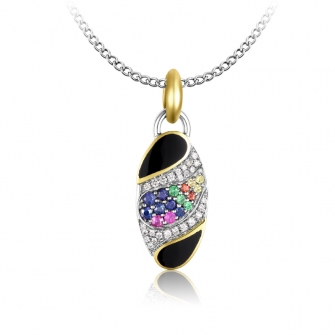 14K White gold / 14K Yellow Gold Inlay Pendant with 0.19cts.T.W. of Diamond Accents, 0.57cts.T.W. of Multi-Color Sapphire, Amethyst and Tsavorites, Black Agate x2