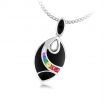 925 Sterling Silver Inlay pendant with .42cts.T.W. of Multi-Color Sapphires & Tsavorite, Black Agate