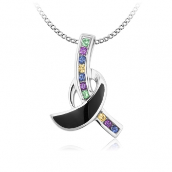 925 Sterling Silver Inlay Pendant 0.38cts.T.W. of Multi-Color stones, Black Agate